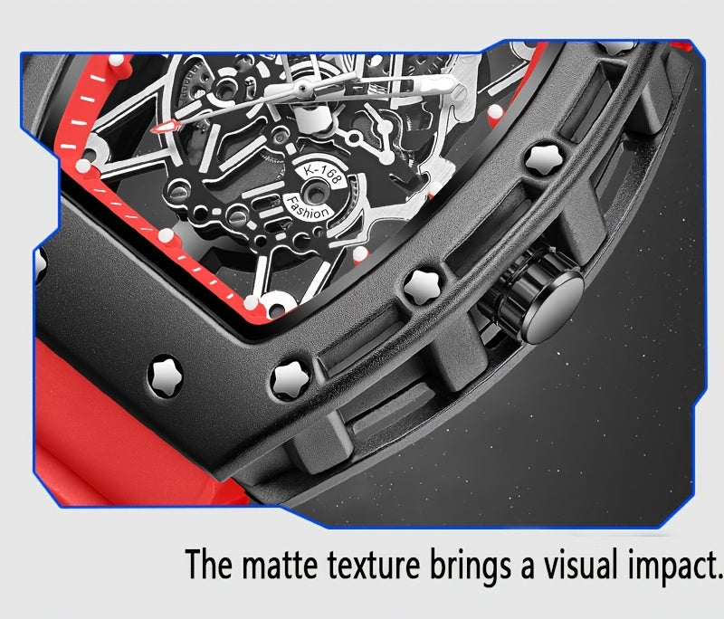 Men’s Richard Sports Watch Quartz Movement | Barrel-Shaped Case | Red Accent Dial