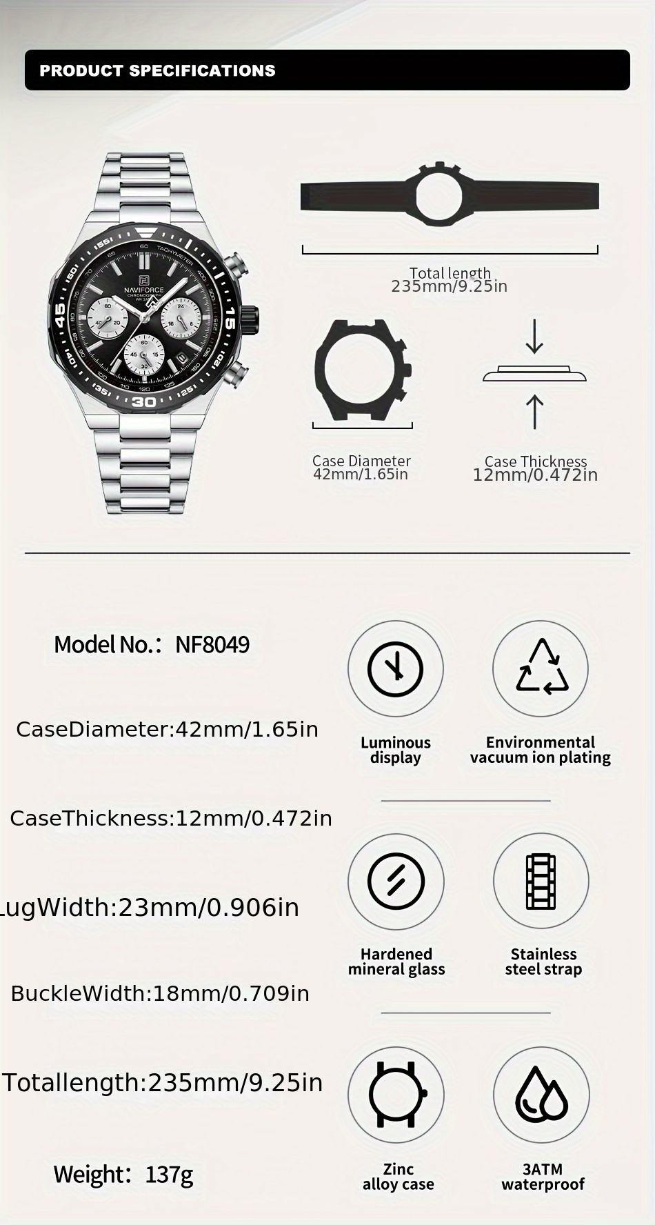 NAVIFORCE Men'S Luxury Business Watch, Multi-function Chronograph Waterproof Men Watches,