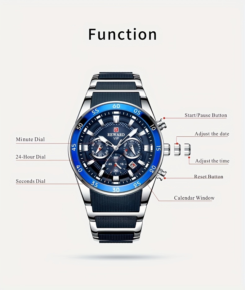 Reward Luminous Men's Watch-Luxury Sports Chronograph with Silicone Strap